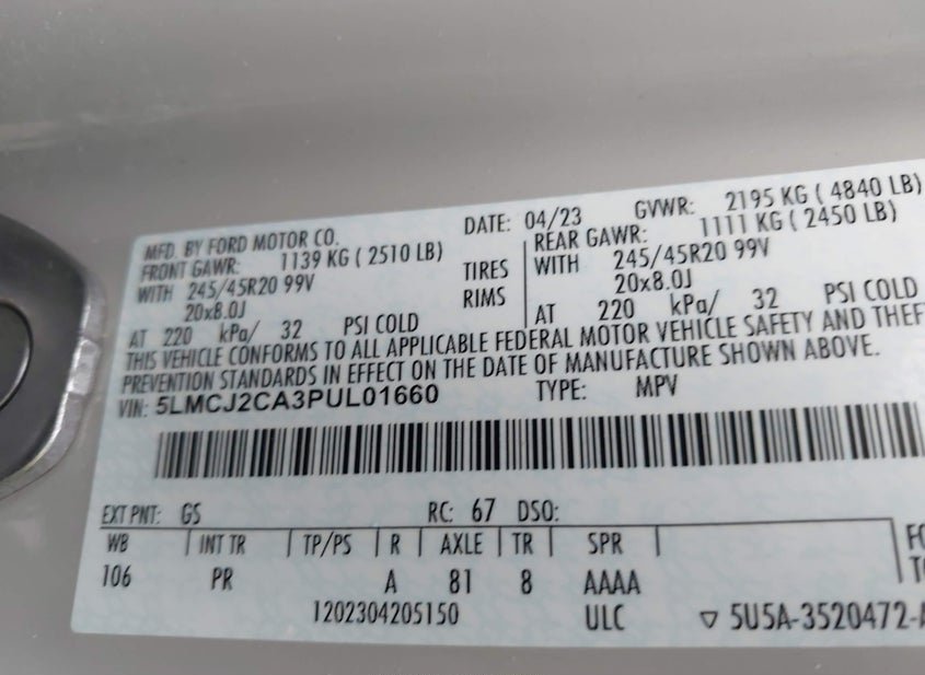 - VIN: 5LMCJ2CA3PUL01660