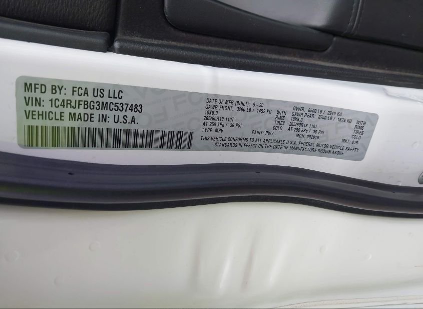 - VIN: 1C4RJFBG3MC537483