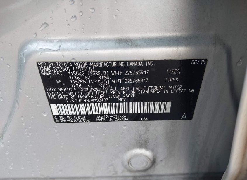 - Название лота: 2015 TOYOTA RAV4 LE