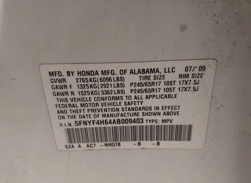 - VIN: 5FNYF4H64AB009403
