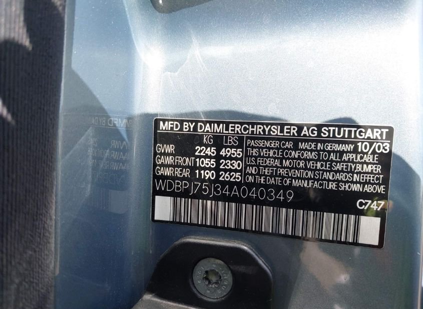 - VIN: WDBPJ75J34A040349