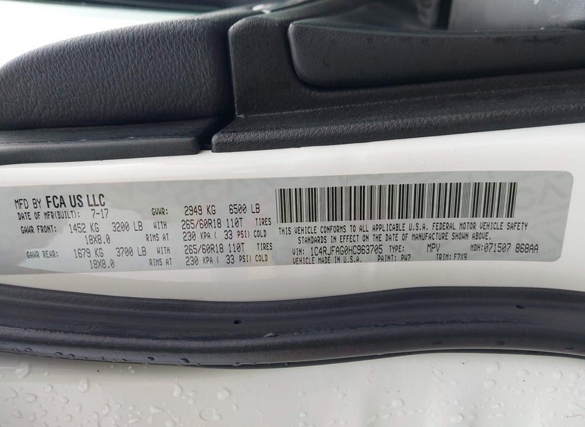 - VIN: 1C4RJFAG0HC963705