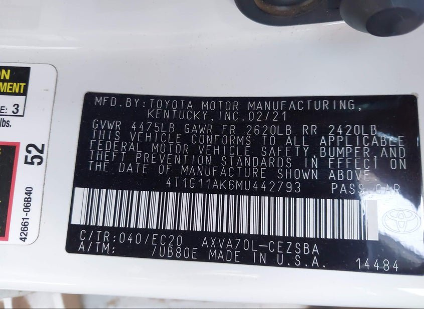 - VIN: 4T1G11AK6MU442793