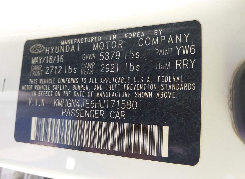 - VIN: KMHGN4JE6HU171580