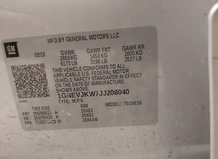 - VIN: 1GNEVJKW7JJ208040