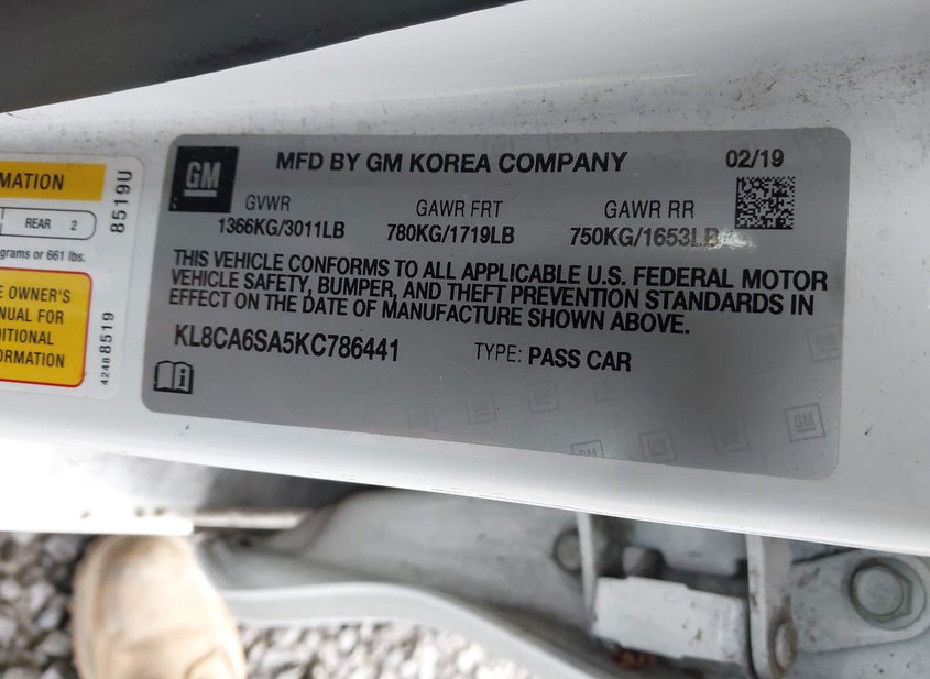 - VIN: KL8CA6SA5KC786441