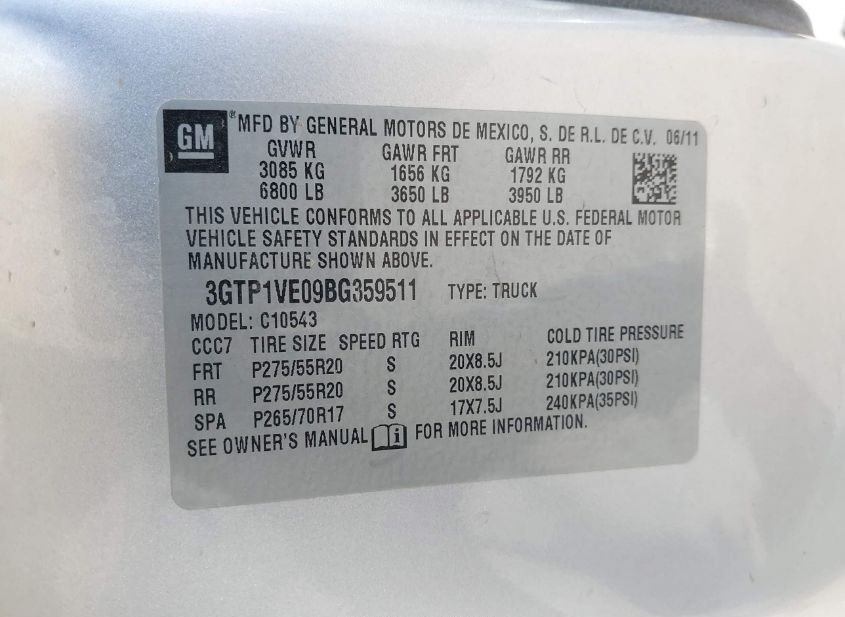 - VIN: 3GTP1VE09BG359511