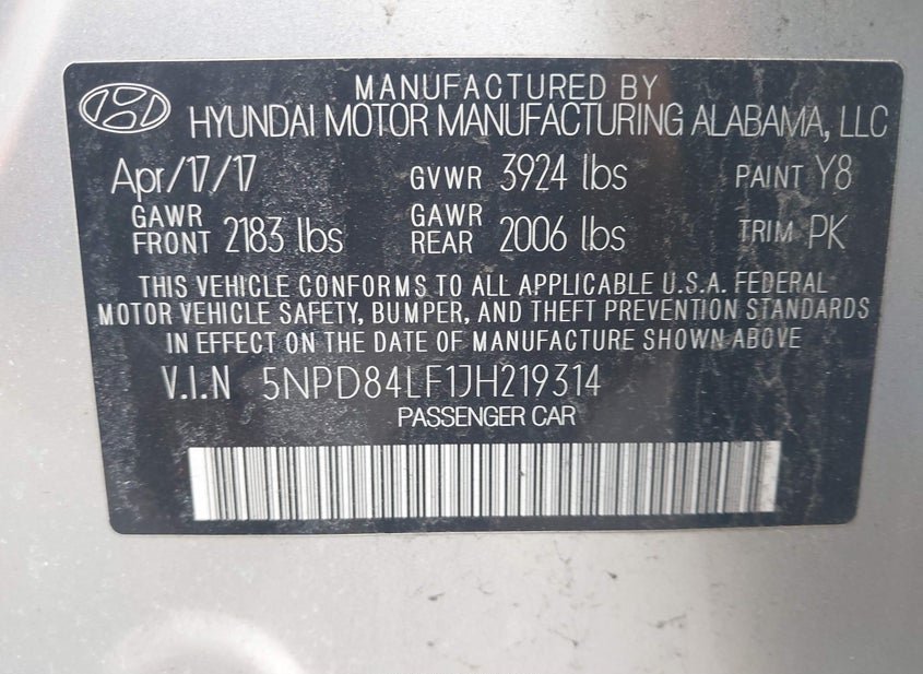 - VIN: 5NPD84LF1JH219314