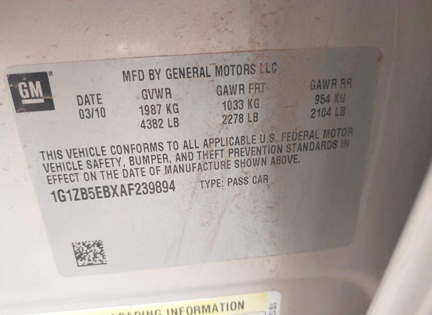 - VIN: 1G1ZB5EBXAF239894