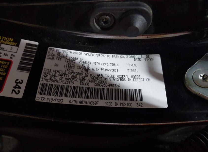 - VIN: 3TMCZ5AN6LM323979