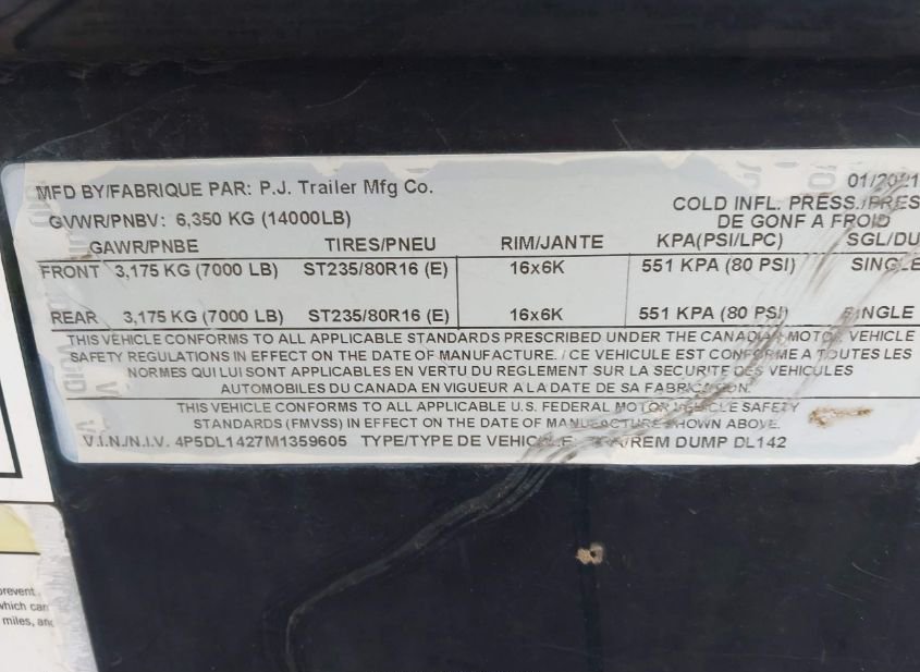 - VIN: 4P5DL1427M1359605