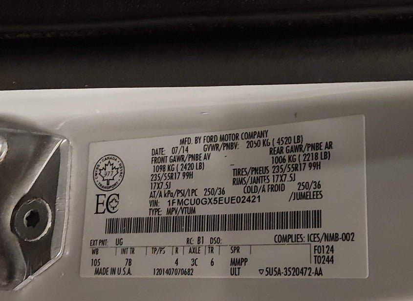- VIN: 1FMCU0GX5EUE02421