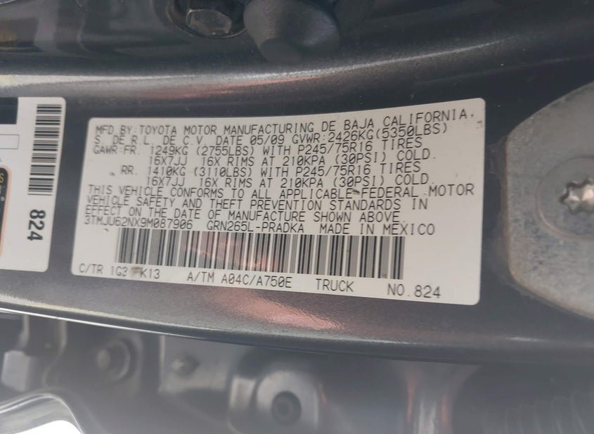 - VIN: 3TMJU62NX9M087906