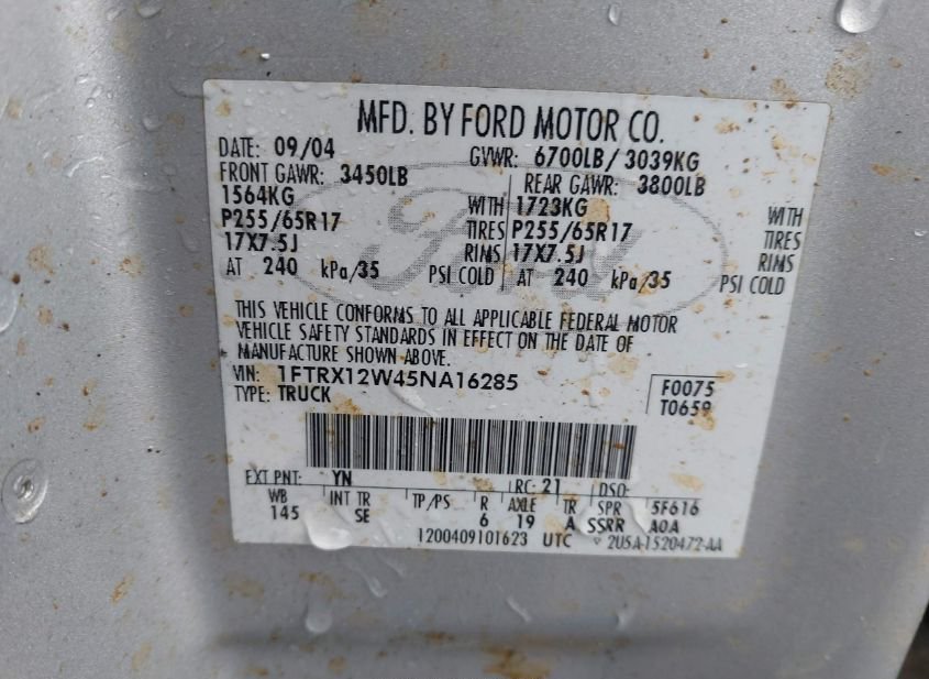 - Название лота: 2005 FORD F-150 STX/XL/XLT