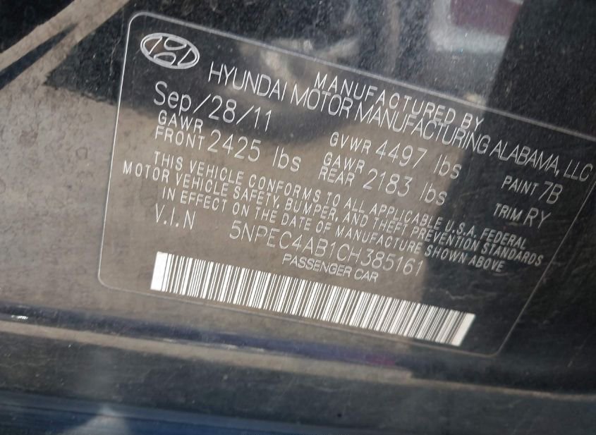 - VIN: 5NPEC4AB1CH385161