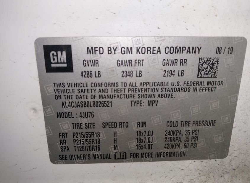 - VIN: KL4CJASB0LB026521