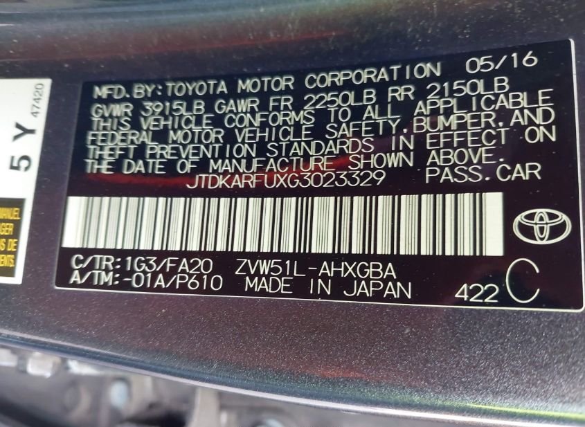 - VIN: JTDKARFUXG3023329
