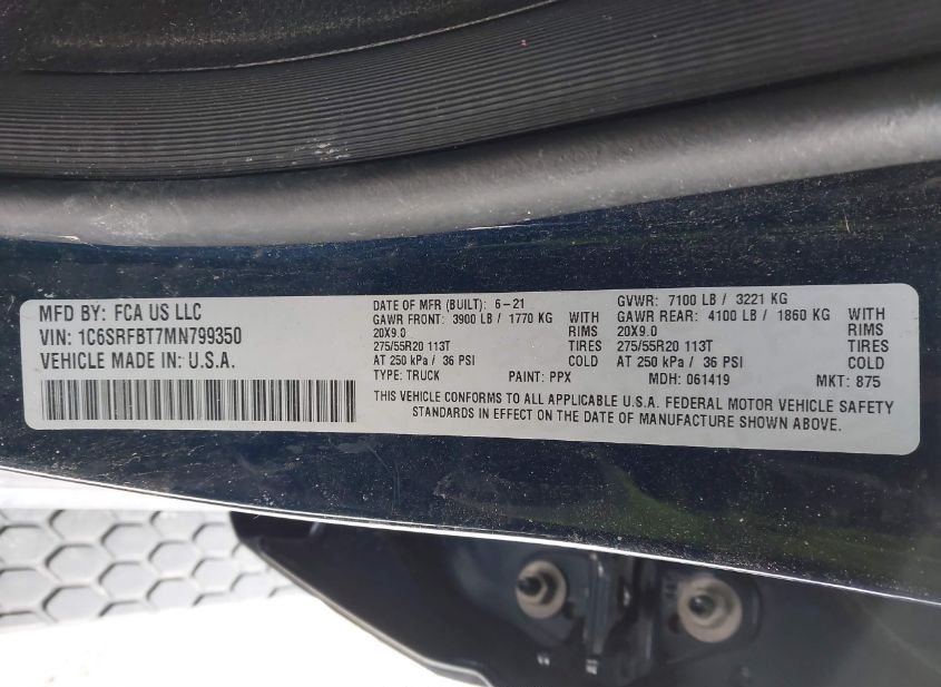 - VIN: 1C6SRFBT7MN799350