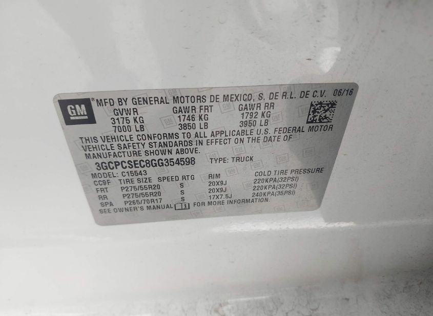 - VIN: 3GCPCSEC8GG354598