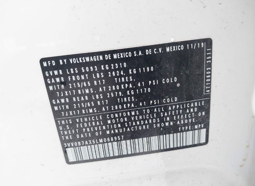 - VIN: 3VV0B7AX5LM068957