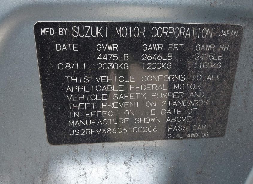 - VIN: JS2RF9A86C6100206