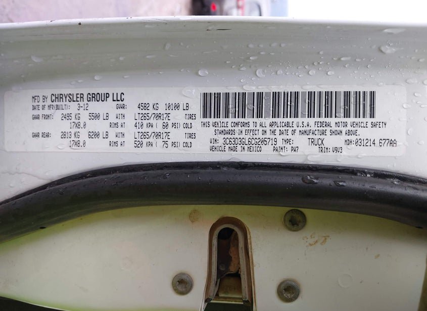 - VIN: 3C63D3GL6CG205719