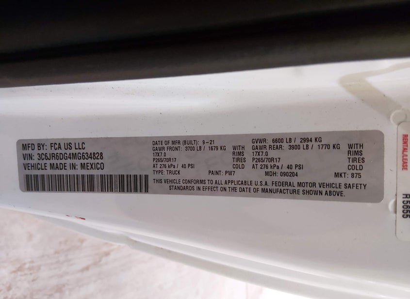 - VIN: 3C6JR6DG4MG634828