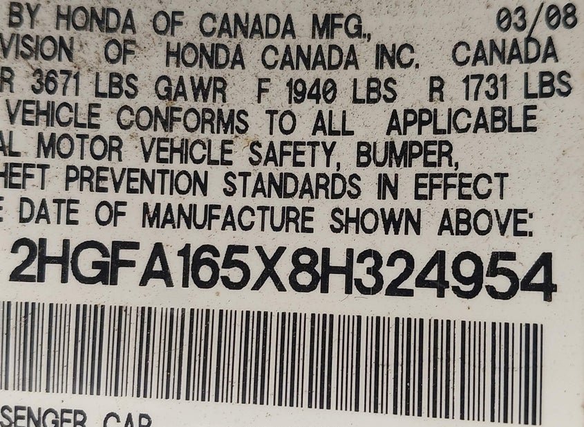 - VIN: 2HGFA165X8H324954