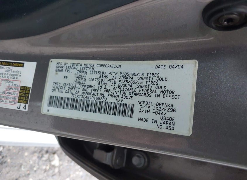 - VIN: JTLKT324840168383
