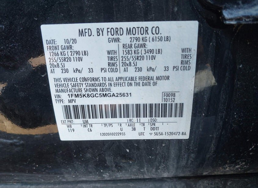 - VIN: 1FM5K8GC5MGA25631