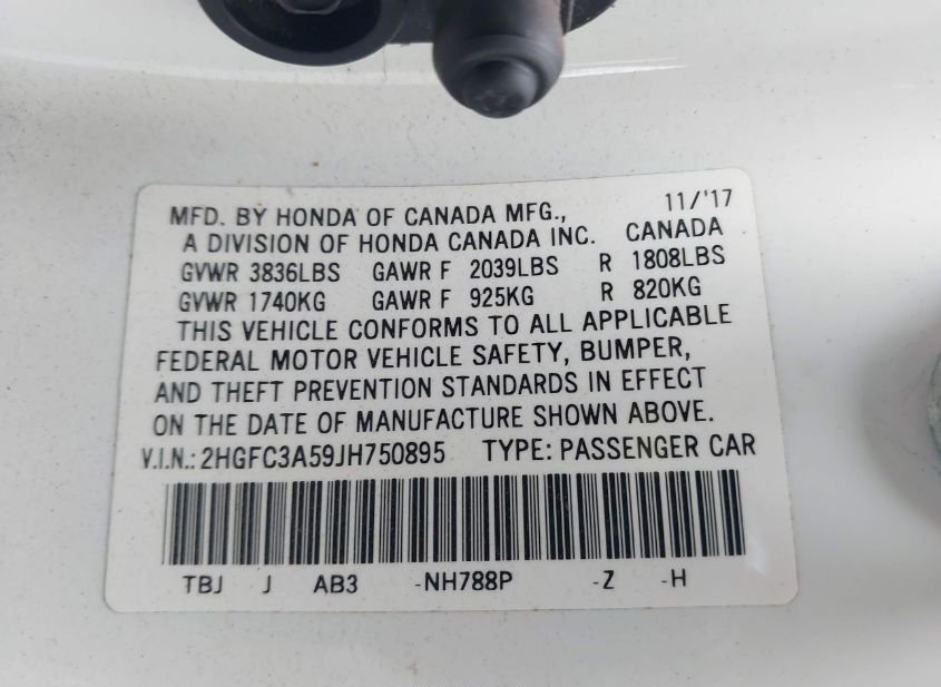 - VIN: 2HGFC3A59JH750895