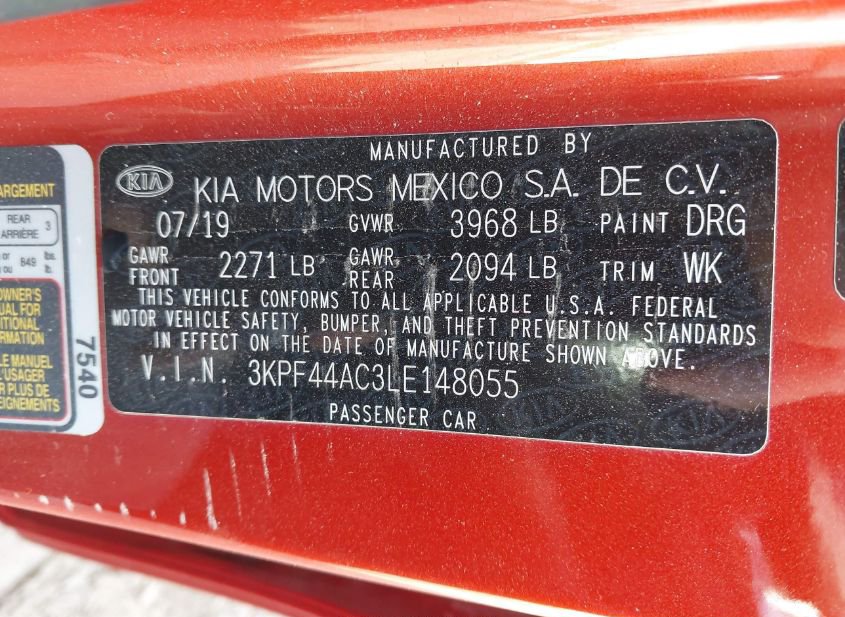 - VIN: 3KPF44AC3LE148055