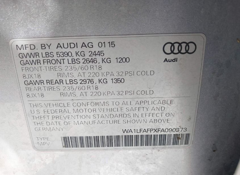 - Название лота: 2015 AUDI Q5 2.0T PREMIUM
