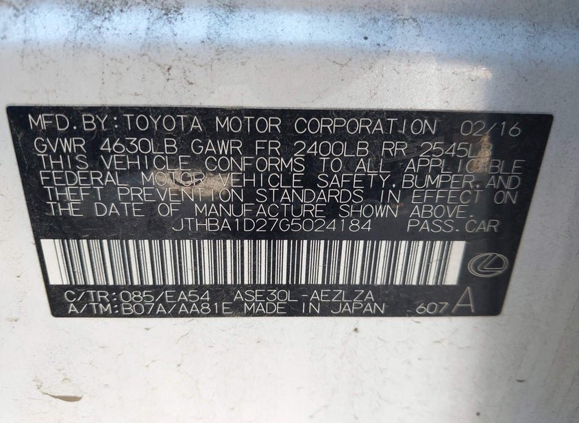 - VIN: JTHBA1D27G5024184