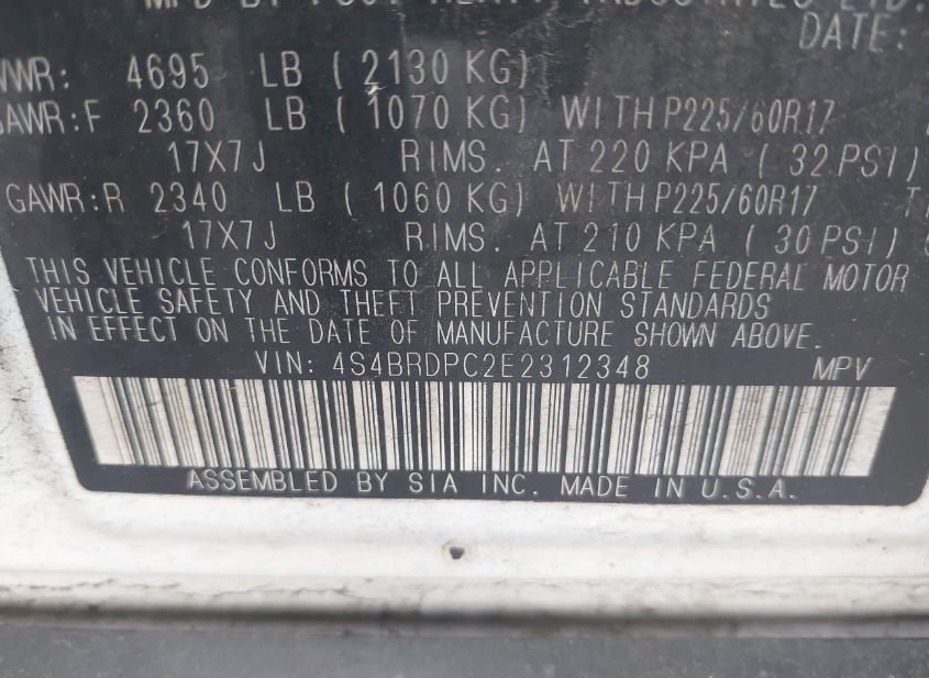 - VIN: 4S4BRDPC2E2312348