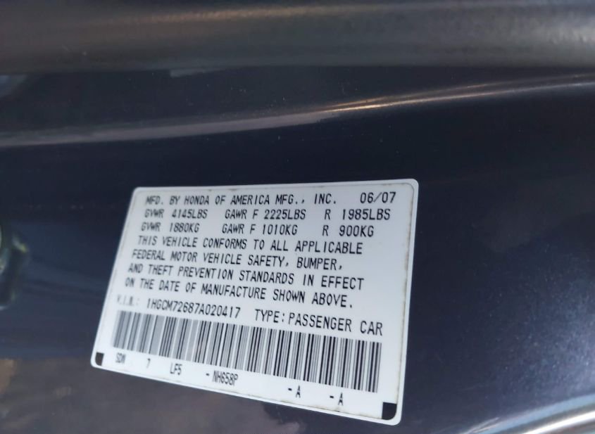 - VIN: 1HGCM72687A020417