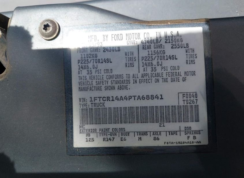 - VIN: 1FTCR14A4PTA68841