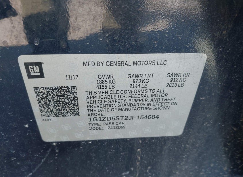 - VIN: 1G1ZD5ST2JF154684