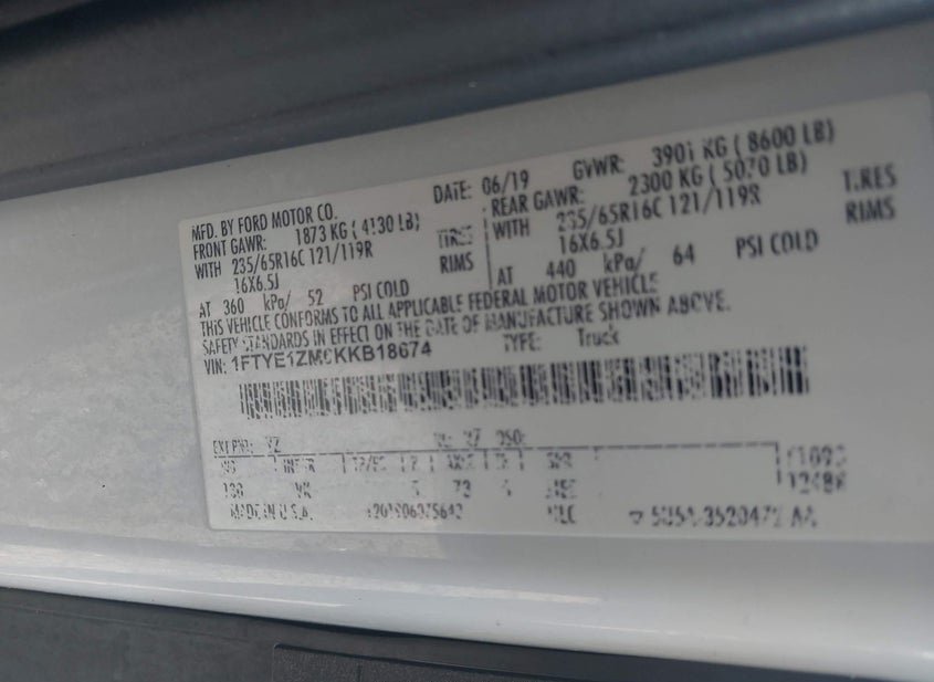 - VIN: 1FTYE1ZM6KKB18674