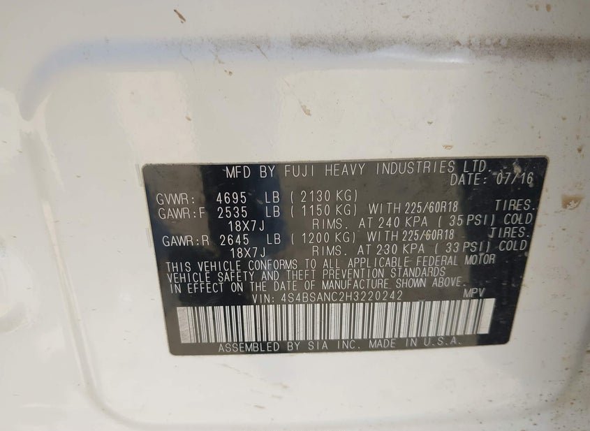 - VIN: 4S4BSANC2H3220242