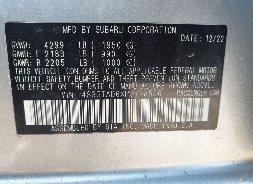 - VIN: 4S3GTAD6XP3708520