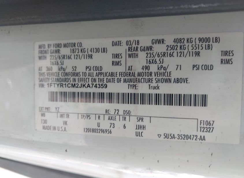 - VIN: 1FTYR1CM2JKA74359