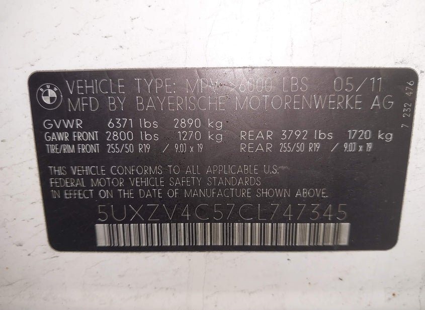 - VIN: 5UXZV4C57CL747345