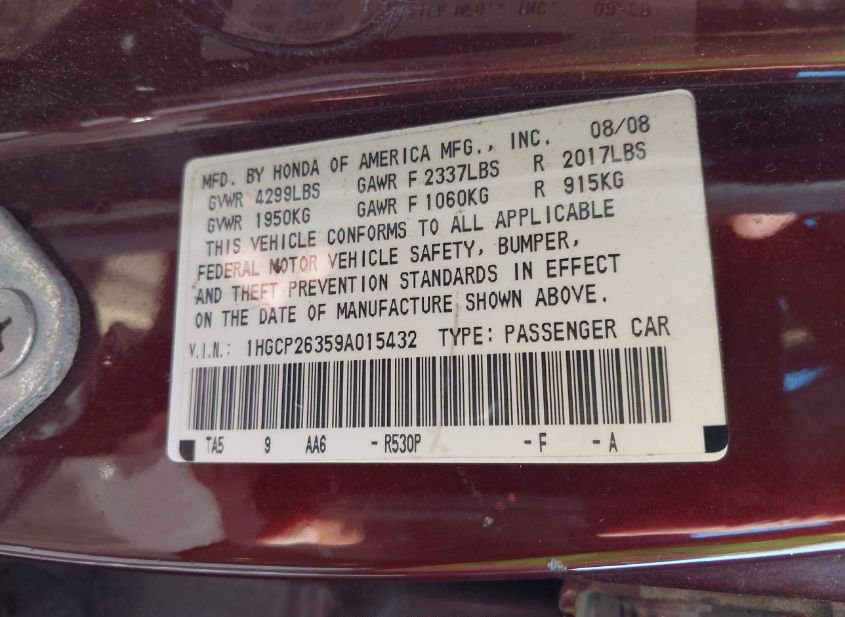 - VIN: 1HGCP26359A015432