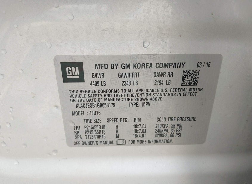 - VIN: KL4CJESB1GB658179
