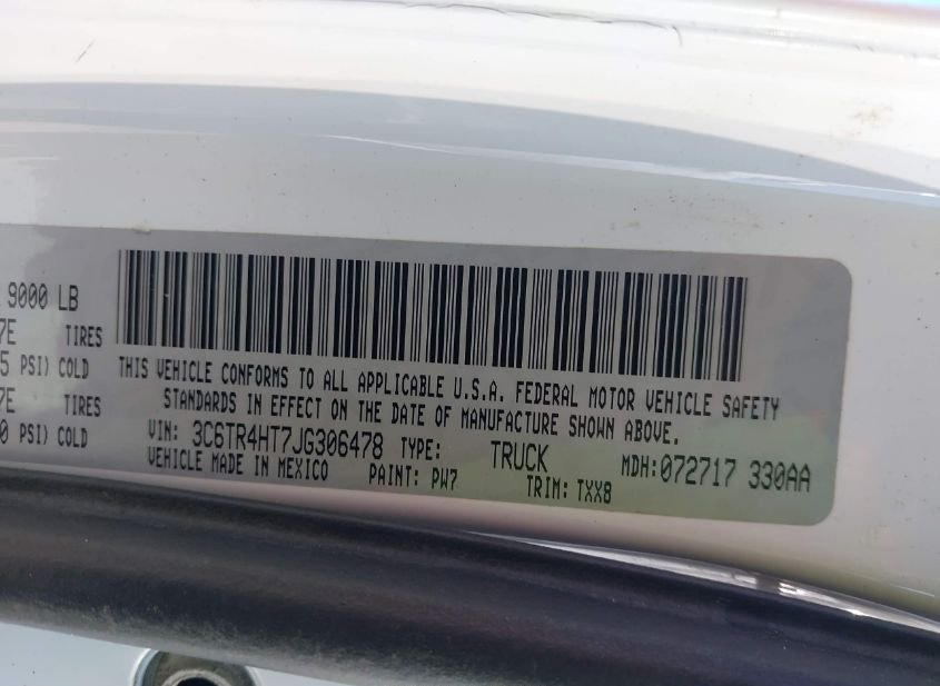 - VIN: 3C6TR4HT7JG306478