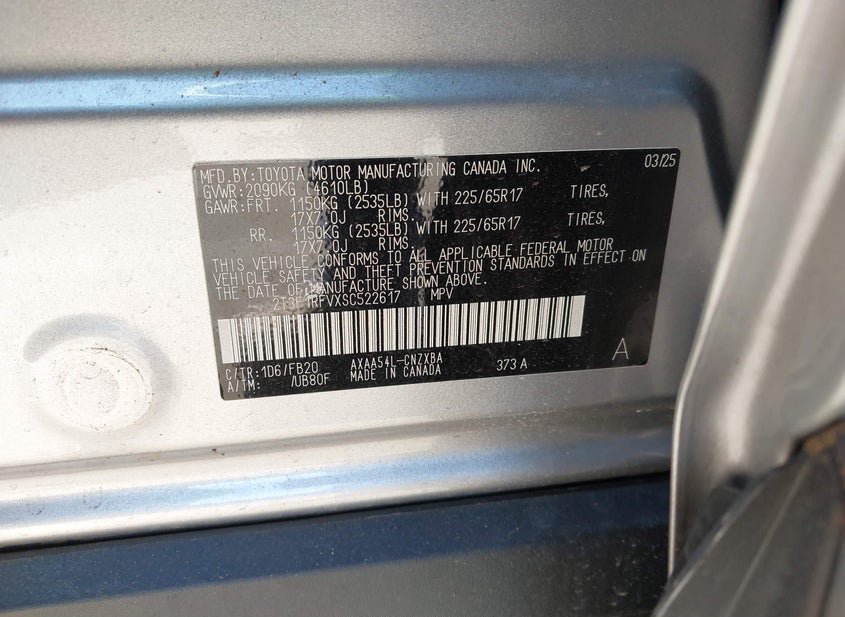 - VIN: 2T3F1RFVXSC522617