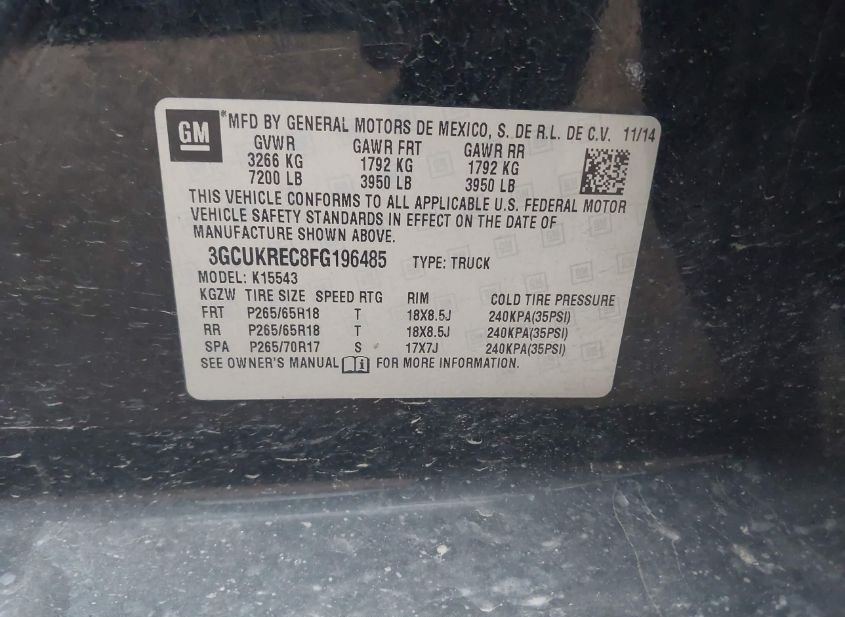 - VIN: 3GCUKREC8FG196485