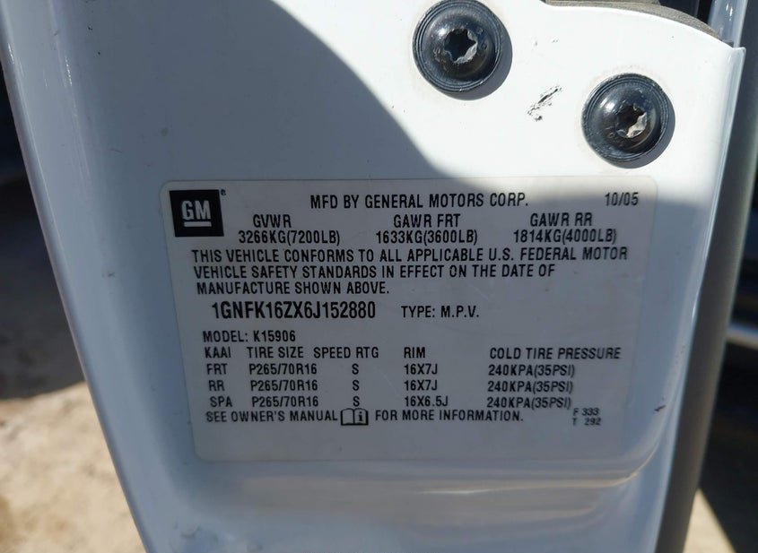 - VIN: 1GNFK16ZX6J152880