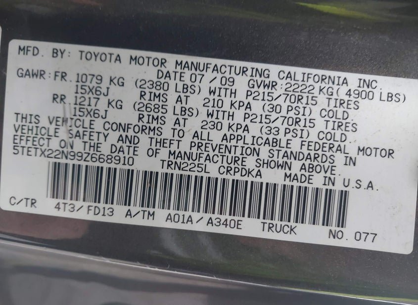 - VIN: 5TETX22N99Z668910